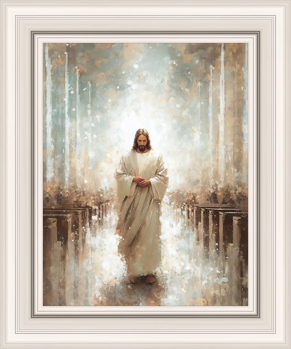 In "Worship," we sought to capture a deeply personal moment within the sacred space of a church. As Jesus walks down the center aisle, surrounded by worshippers lost in devotion, there's a palpable sense of His presence infusing every corner of the room.