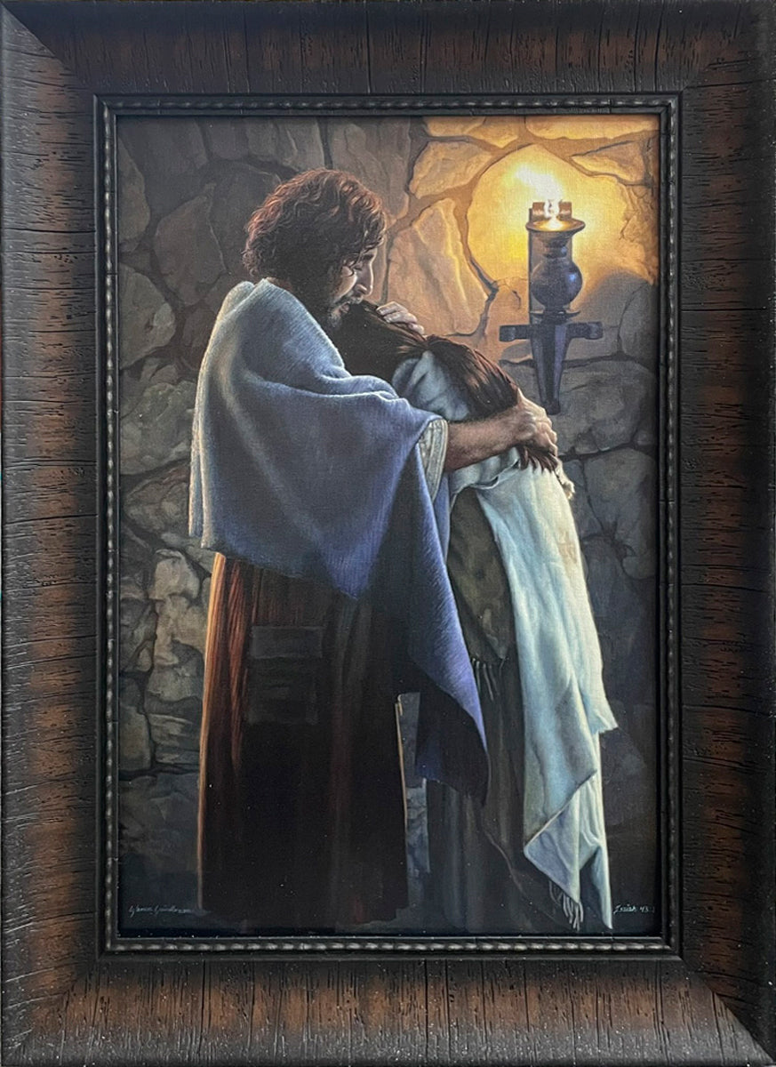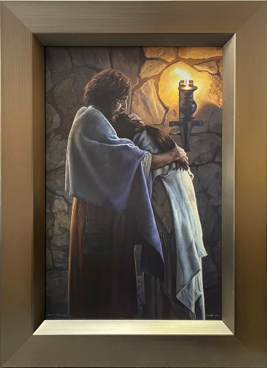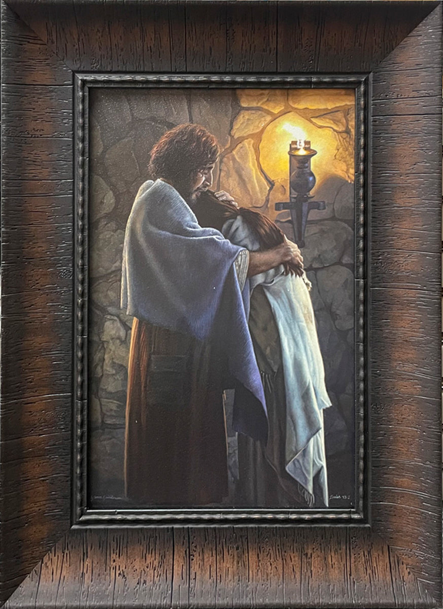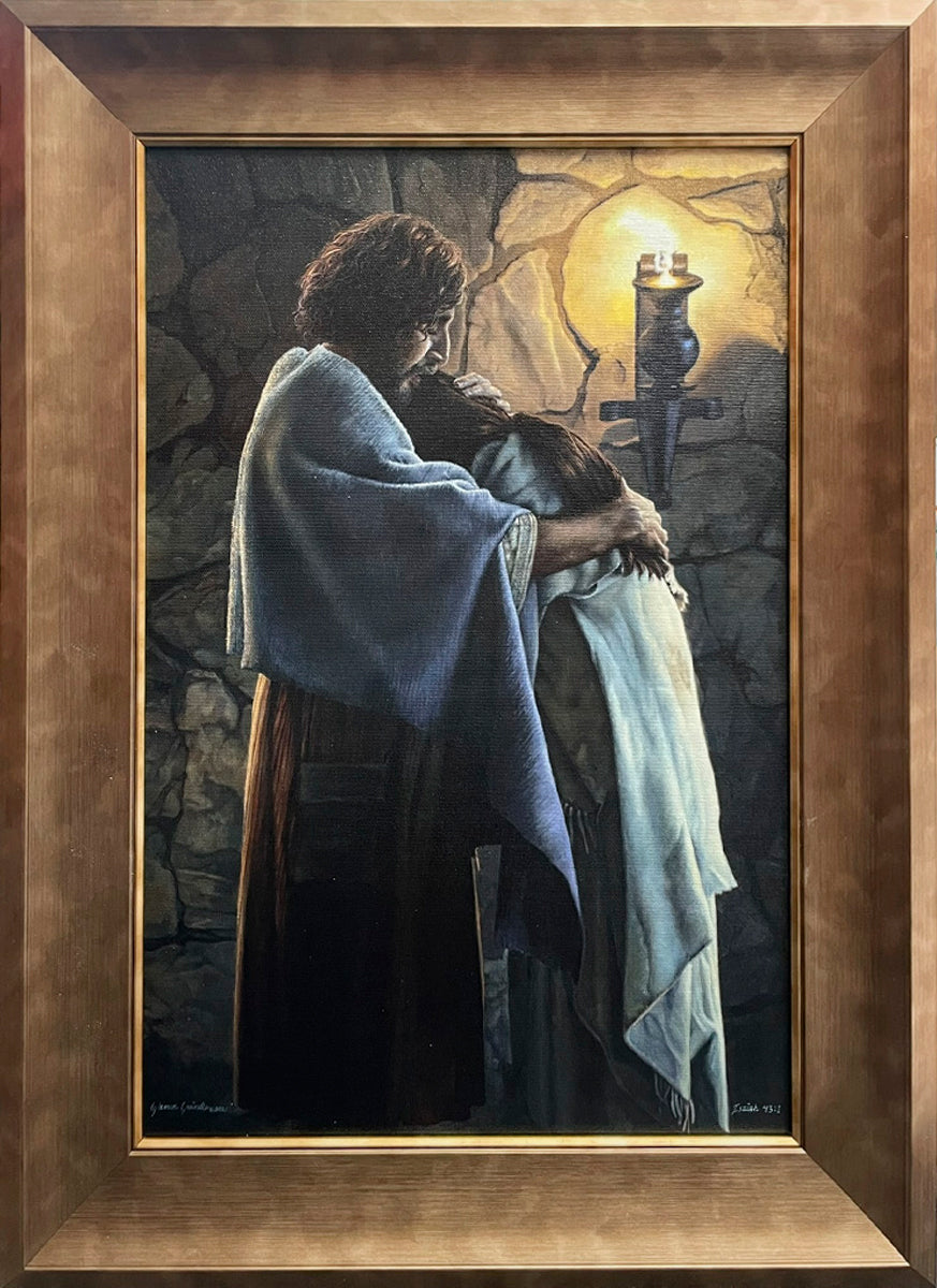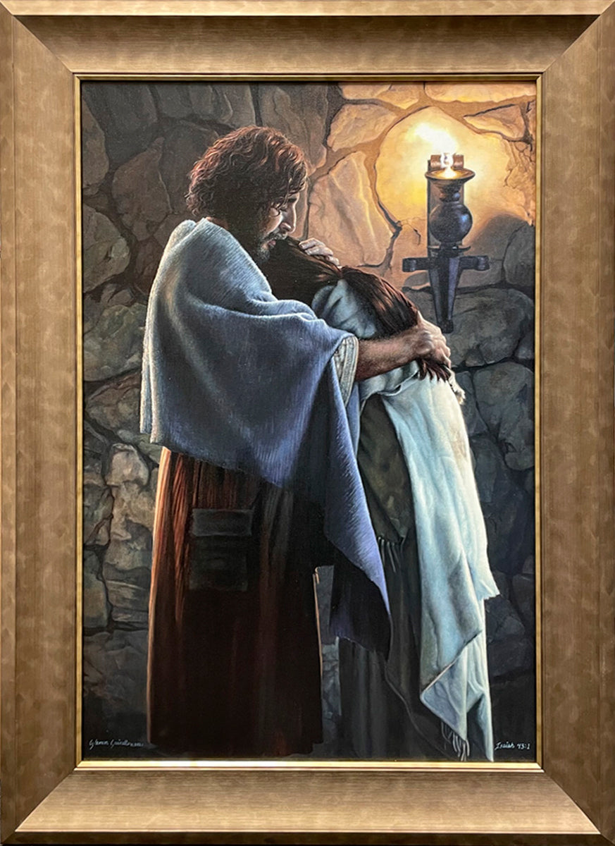 In the painting, Mary is leaning into Jesus weeping from the overwhelming feeling of relief and comfort she was experiencing. Our imperfect nature is expected and completely forgiven when we surrender to Jesus Christ. He knows each of us by name, and no soul is forgotten. This is a moment of complete surrender to the safe embrace of the Savior - who knows our shortcomings yet continues to love us.