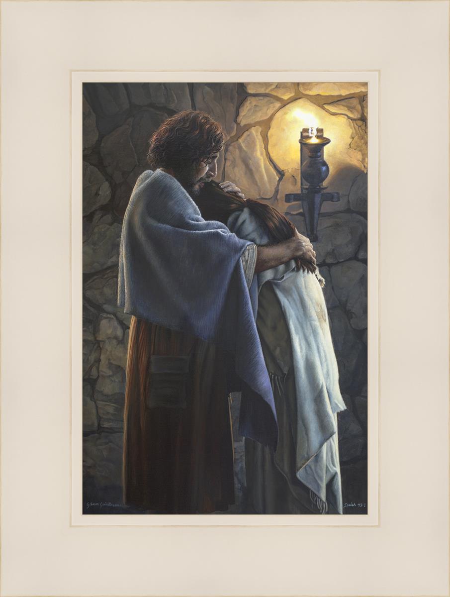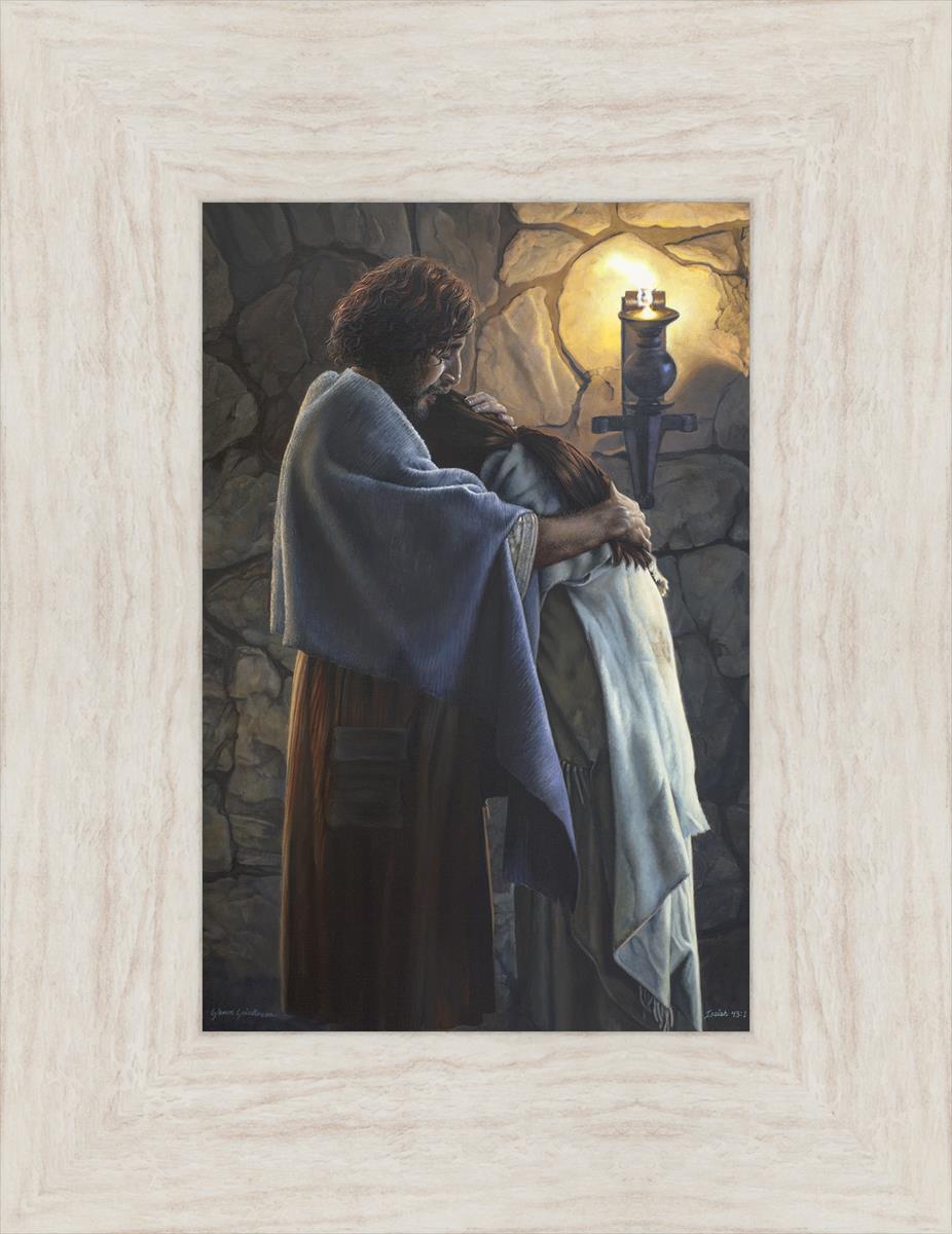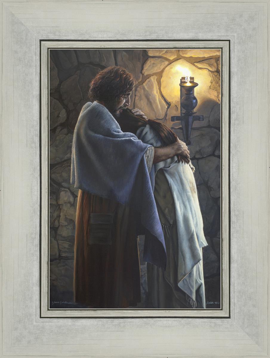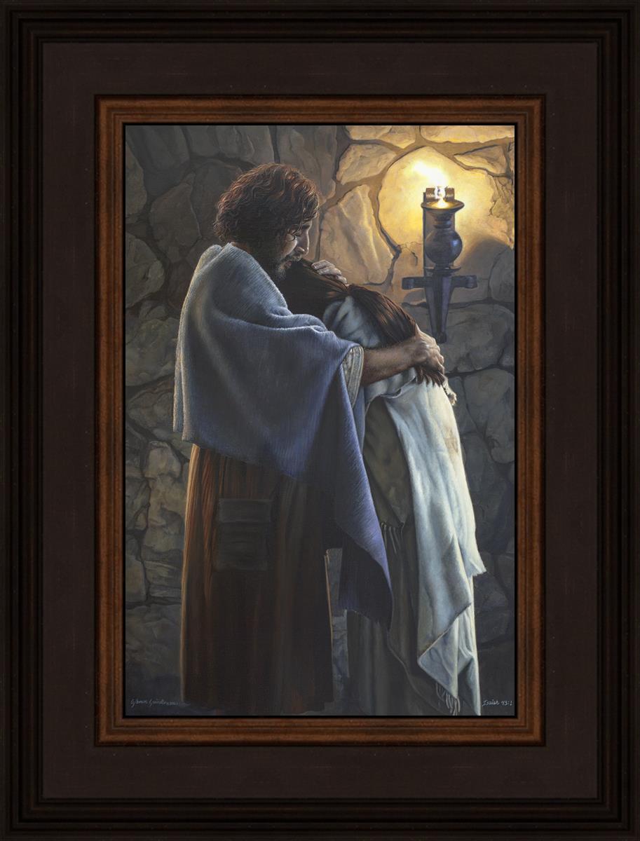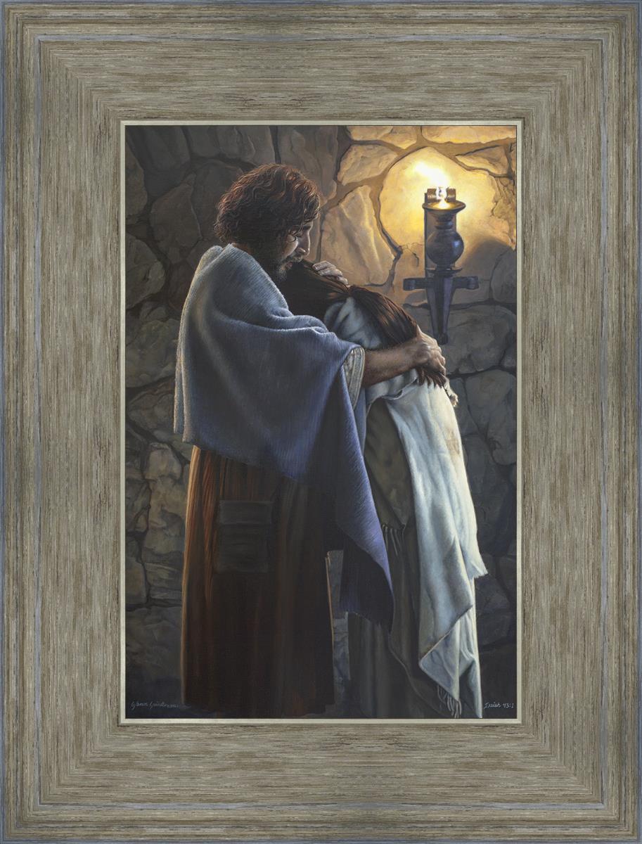 In the painting, Mary is leaning into Jesus weeping from the overwhelming feeling of relief and comfort she was experiencing. Our imperfect nature is expected and completely forgiven when we surrender to Jesus Christ. He knows each of us by name, and no soul is forgotten. This is a moment of complete surrender to the safe embrace of the Savior - who knows our shortcomings yet continues to love us.