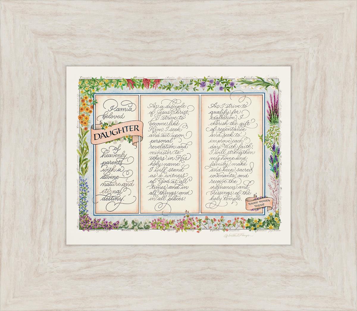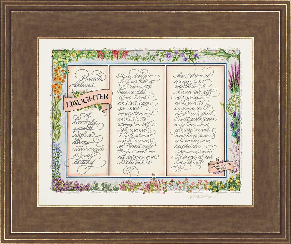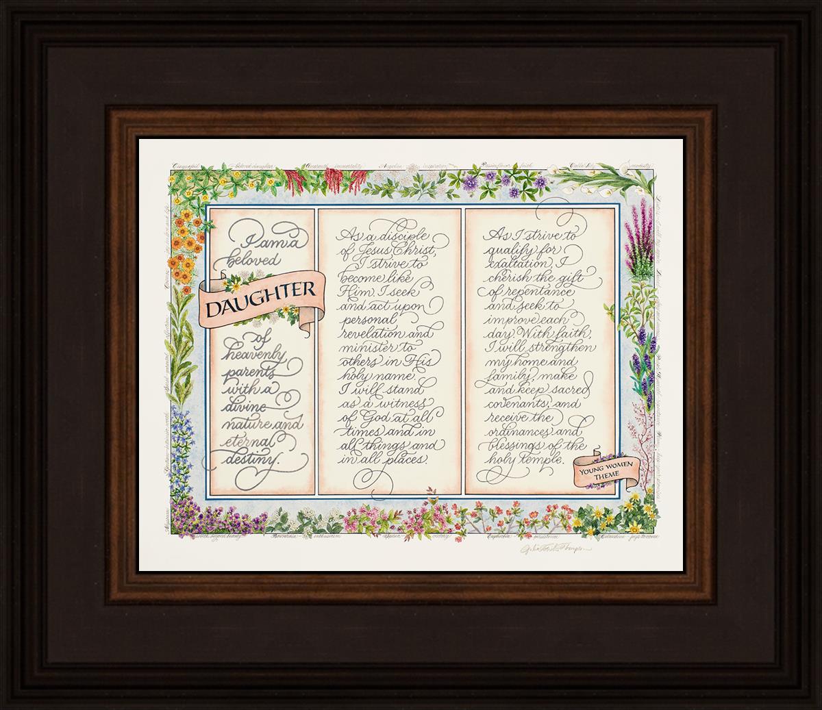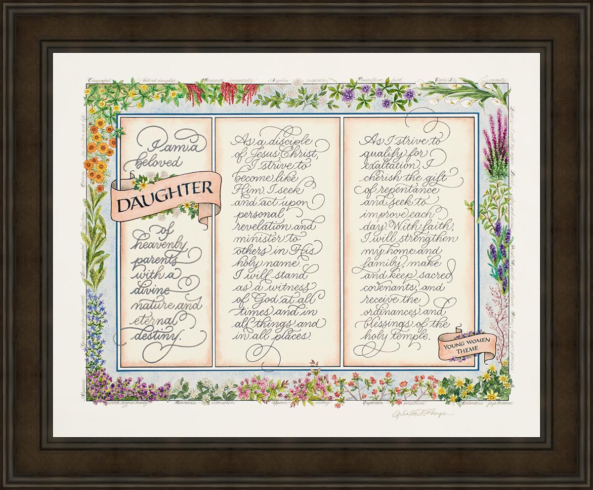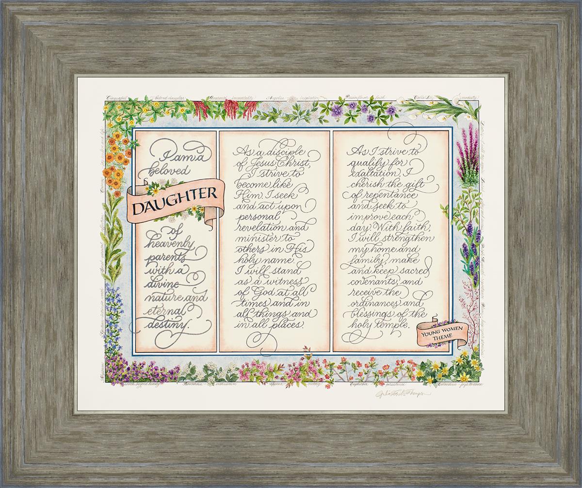 Julia Fish Thompson won a handwriting award in elementary school, took her first calligraphy class at age 13, and majored in design at Brigham Young University. She letters on anything that will hold still—paper, board, walls, metal, glass, canvas, fabric, various objects--and has maintained a home studio since her teens. She continues to study with amazing calligraphers around the world. The challenge of executing involved, hand-lettered pieces has exhilarated Julia for years and she loves to create custom works commemorating events or personalized for families or businesses. Julia and her husband David reside in Zionsville, Indiana where they recently finished raising four children. Julia met Liz Lemon Swindle at a community nativity event where they were guest artists and Liz invited her to join with other Havenlight artists, a true honor, especially for a calligrapher.